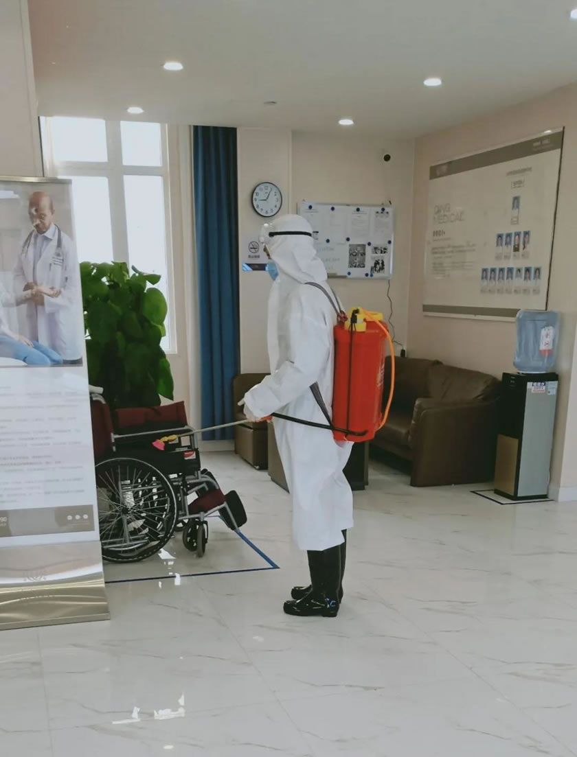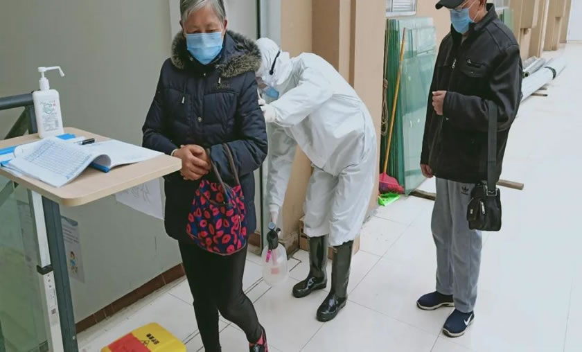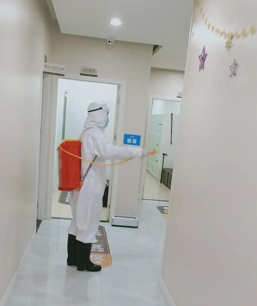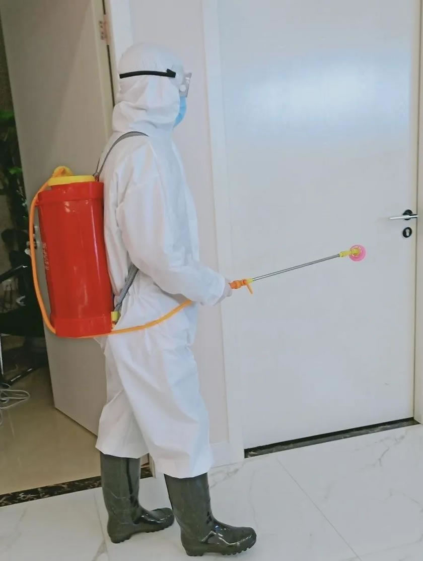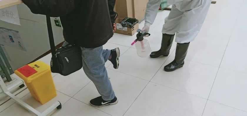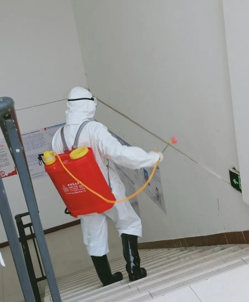 王建軍正在認(rèn)真進(jìn)行消毒工作