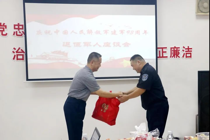 興中集團(tuán)朱其光副總經(jīng)理以自身經(jīng)歷,談了人民解放軍在戰(zhàn)爭年代、和平年代對國家和民族做出的突出貢獻(xiàn),樸實(shí)的語言表達(dá)了對人民子弟兵的由衷敬意。保安公司鄭志強(qiáng)總經(jīng)理在講話中也表達(dá)了對退伍軍人期盼,希望公司的退伍軍人,要始終牢記革命軍人優(yōu)良傳統(tǒng),退伍不退色,讓“八一”精神發(fā)揚(yáng)廣大。鼓勵(lì)公司退伍軍人在新時(shí)代更要有新作為,要牢記人民軍隊(duì)的宗旨,不忘黨和人民囑托,把嚴(yán)明的組織紀(jì)律,嚴(yán)謹(jǐn)?shù)墓ぷ髯黠L(fēng),和不怕吃苦、勇于拼搏、甘于奉獻(xiàn)的好思想、好傳統(tǒng)、好作風(fēng)帶到崗位上,用實(shí)際行動和工作業(yè)績證明軍人的價(jià)值。