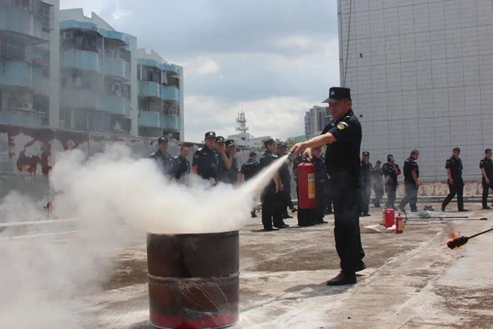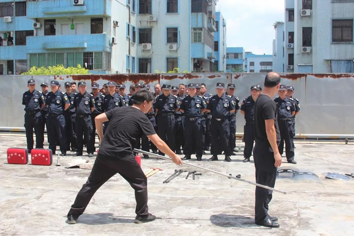 較后,進行保安員執(zhí)勤規(guī)范、突發(fā)事件應急處理,安保器械(鋼叉、催淚器、盾牌、伸縮棍)的使用方法、技巧培訓和滅火器使用方法等實操教學。