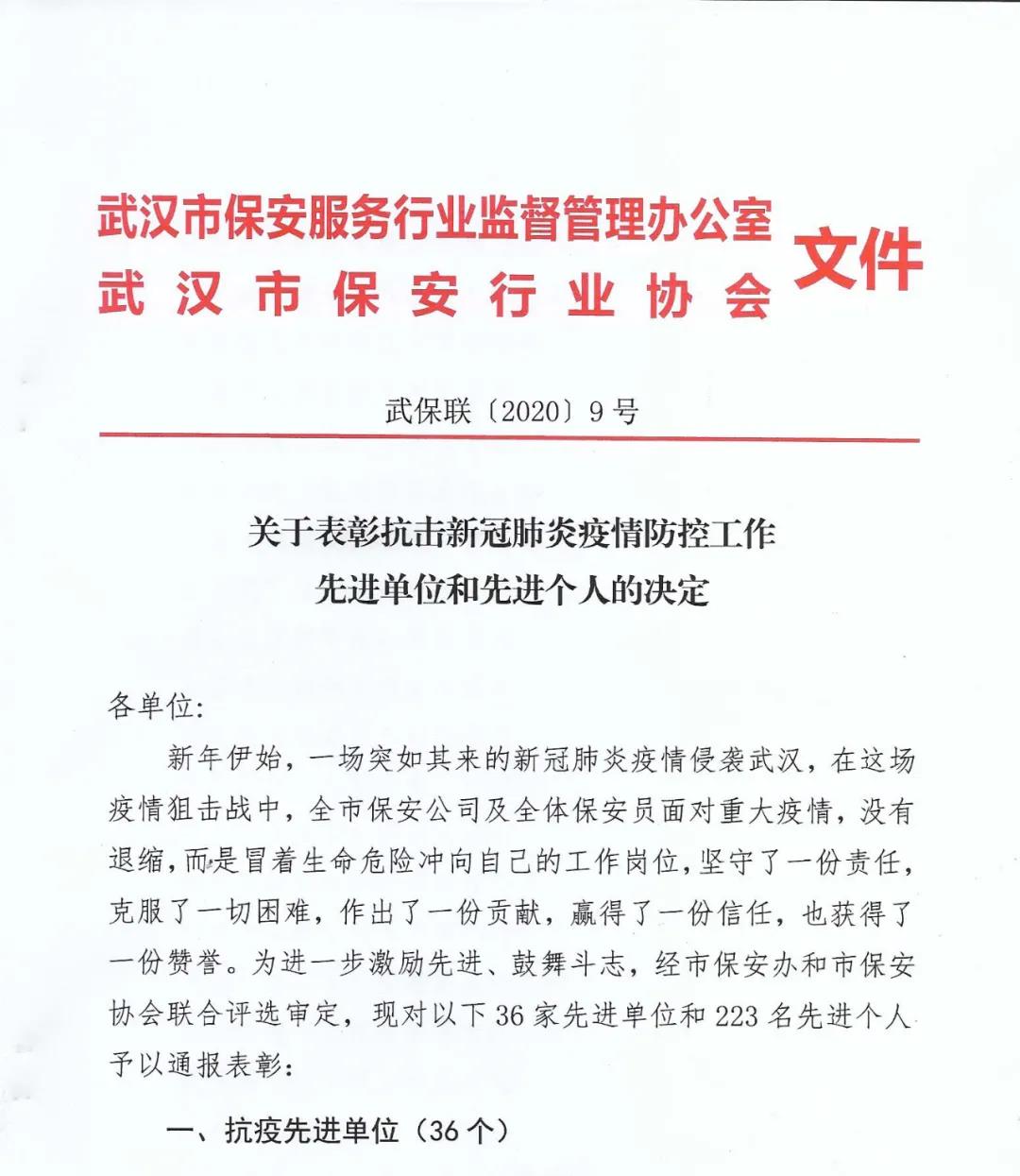 7月30日,武漢市保安行業(yè)協(xié)會(huì)召開(kāi)第二屆次會(huì)員大會(huì)暨表彰大會(huì),對(duì)一批在抗擊新冠疫情阻擊戰(zhàn)中作出貢獻(xiàn)的單位及個(gè)人進(jìn)行表彰。